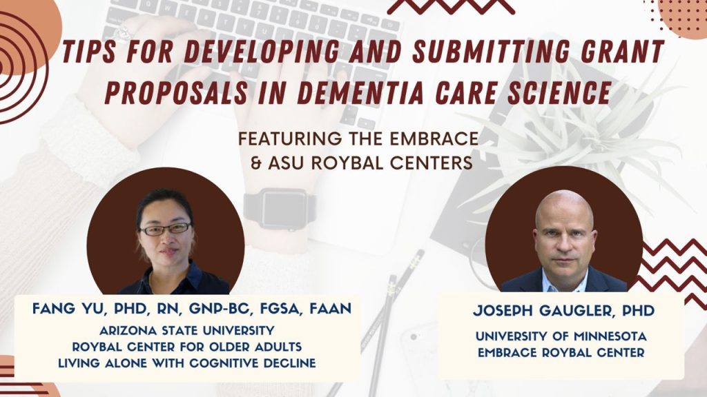 The presentation focuses on providing tips for developing and submitting grant proposals for dementia care science. Dr. Gaugler and Dr. Yu share grant application best practices, particularly for proposals focused on mechanistic research.